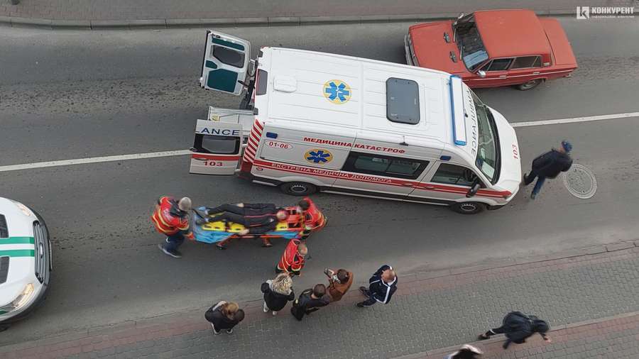 На місце оперативно прибули медики і патрульні, дитину на ношах занесли до «швидкої» і зупинились у «кишені» поруч для надання першої допомоги.