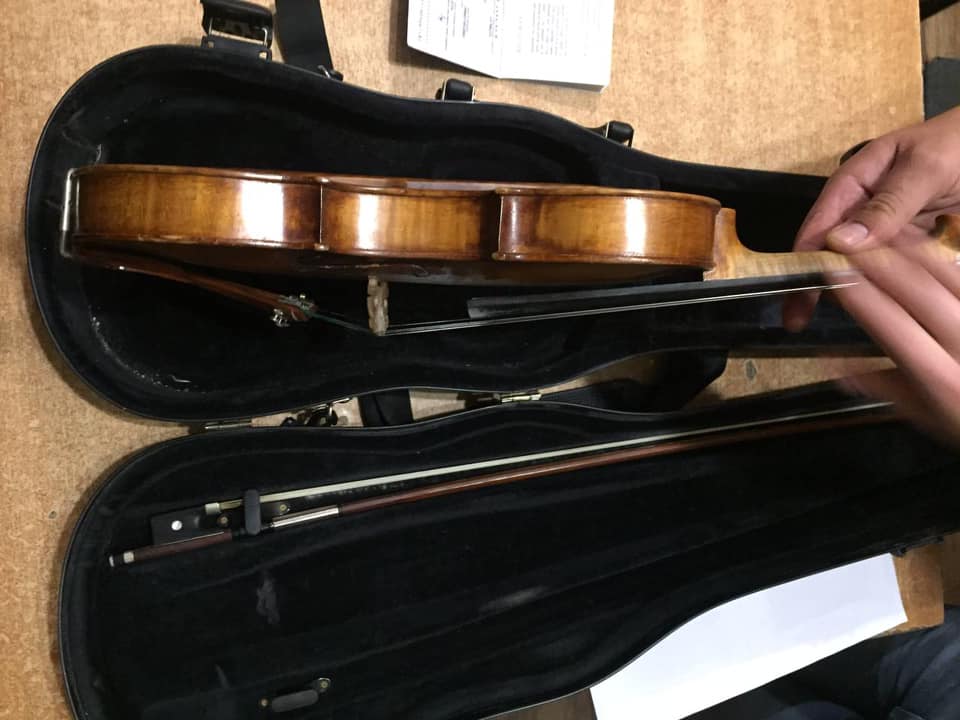 В результаті проведення повного митного огляду вищевказаного транспортного засобу в салоні автомобіля виявили чорний футляр в якому знаходився смичковий музичний інструмент.