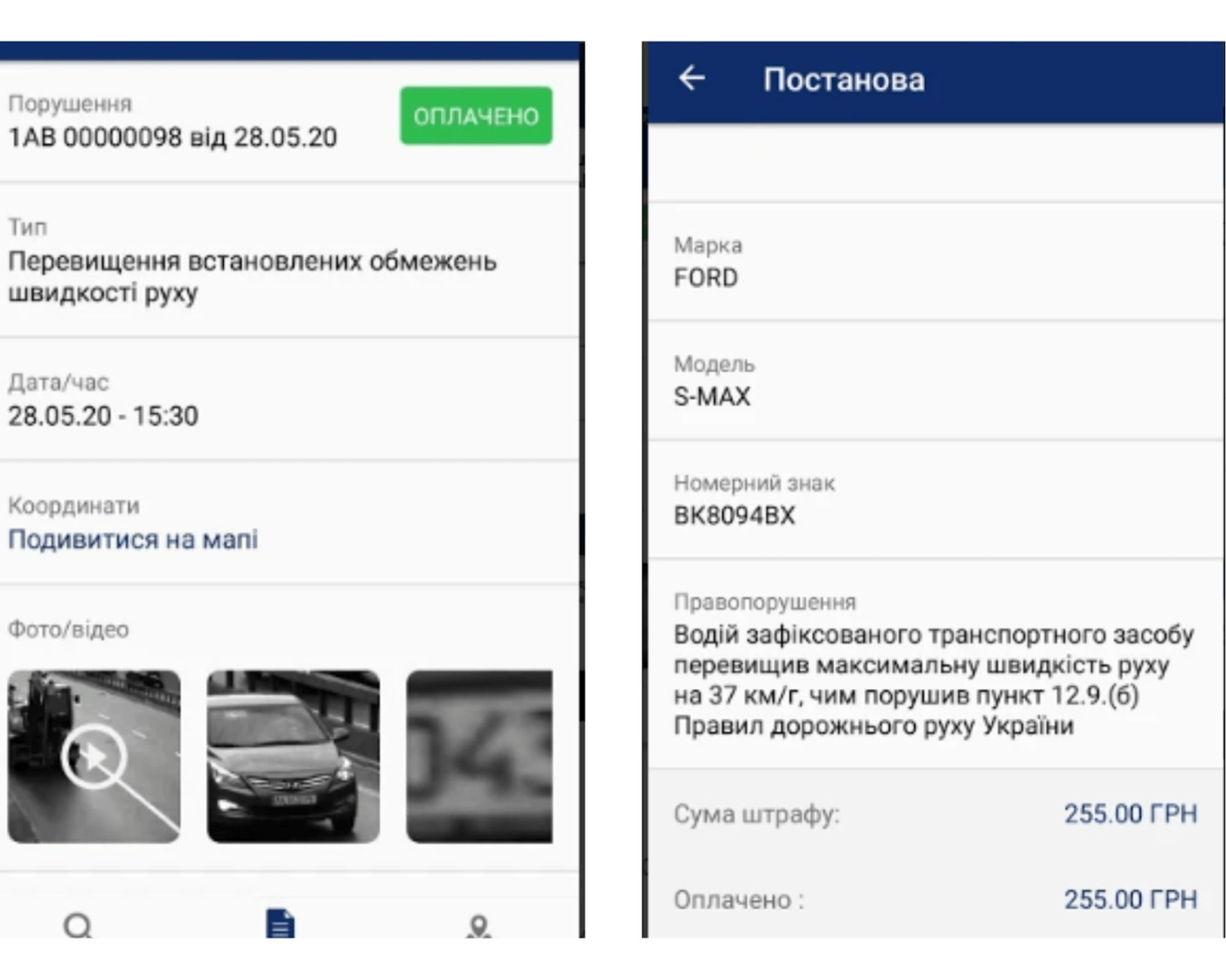 У разі наявності штрафу додаток покаже не тільки наявність штрафу, але також і те, за що виписаний штраф.