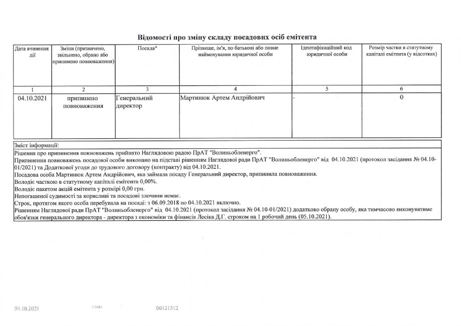 У енергорозподільчій компанії «Волиньобленерго» 4 жовтня наглядова рада припинила повноваження генерального директора Артема Мартинюка.
