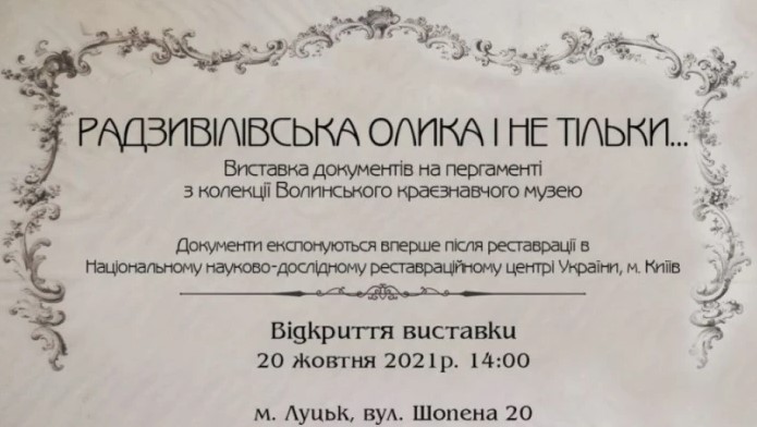У Волинському краєзнавчому музеї відбудеться презентація відреставрованих музейних документів на пергаменті. Реставраційні роботи провели фахівці Національного науково-дослідного реставраційного центру України (Київ).