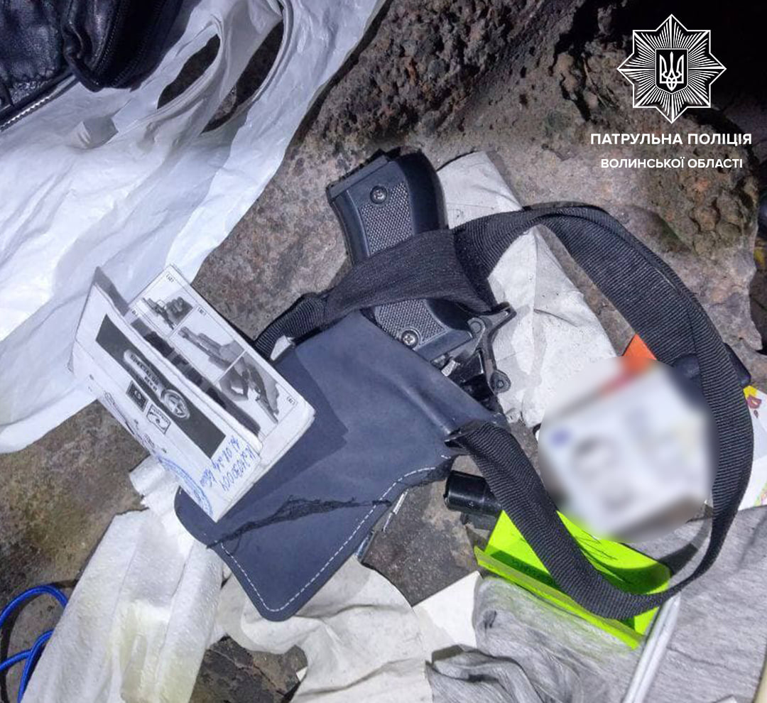 Поліціянти, які прибули за вказаною адресою, оглянули прилеглу територію та виявили чотирьох осіб. Відповідно до ст. 34 Закону України «Про Національну поліцію», патрульні застосували до них превентивний захід поверхневу перевірку. Під час якої у 28-річного чоловіка виявили предмет, ззовні схожий на пістолет, 6 ламп, які ззовні схожі на пристрої для вживання наркотичних засобів, предмет, ззовні схожий на холодну зброю, 5 мобільних телефонів, пакет із порошкоподібною речовиною, ззовні схожою на наркотичну, та велосипед.