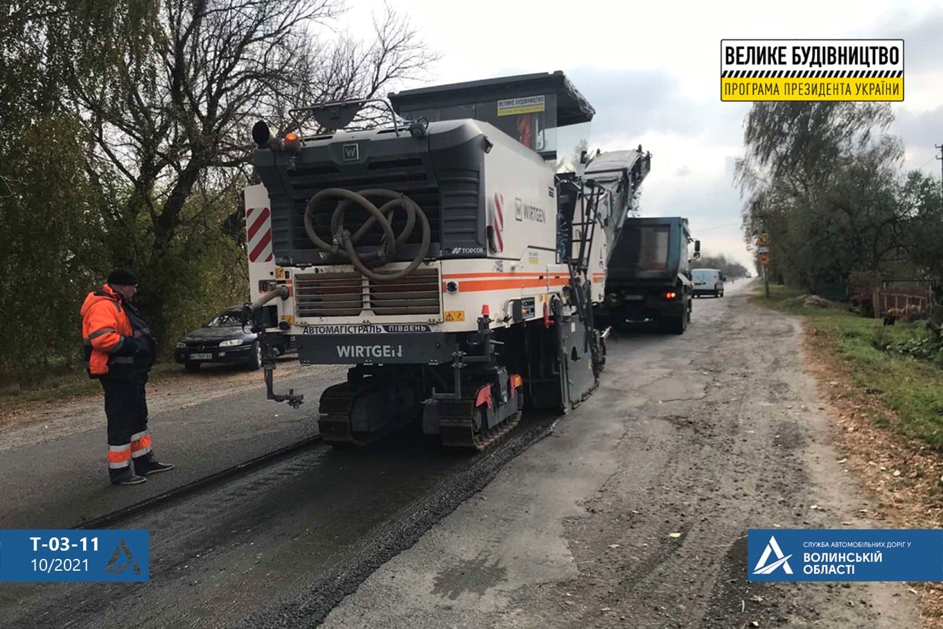 У понеділок, 18 жовтня, на автошляху у селі Війниця підрядник розпочав фрезерування зношеного дорожнього покриття, дорожня техніка рухається у напрямку колишнього райцентру.