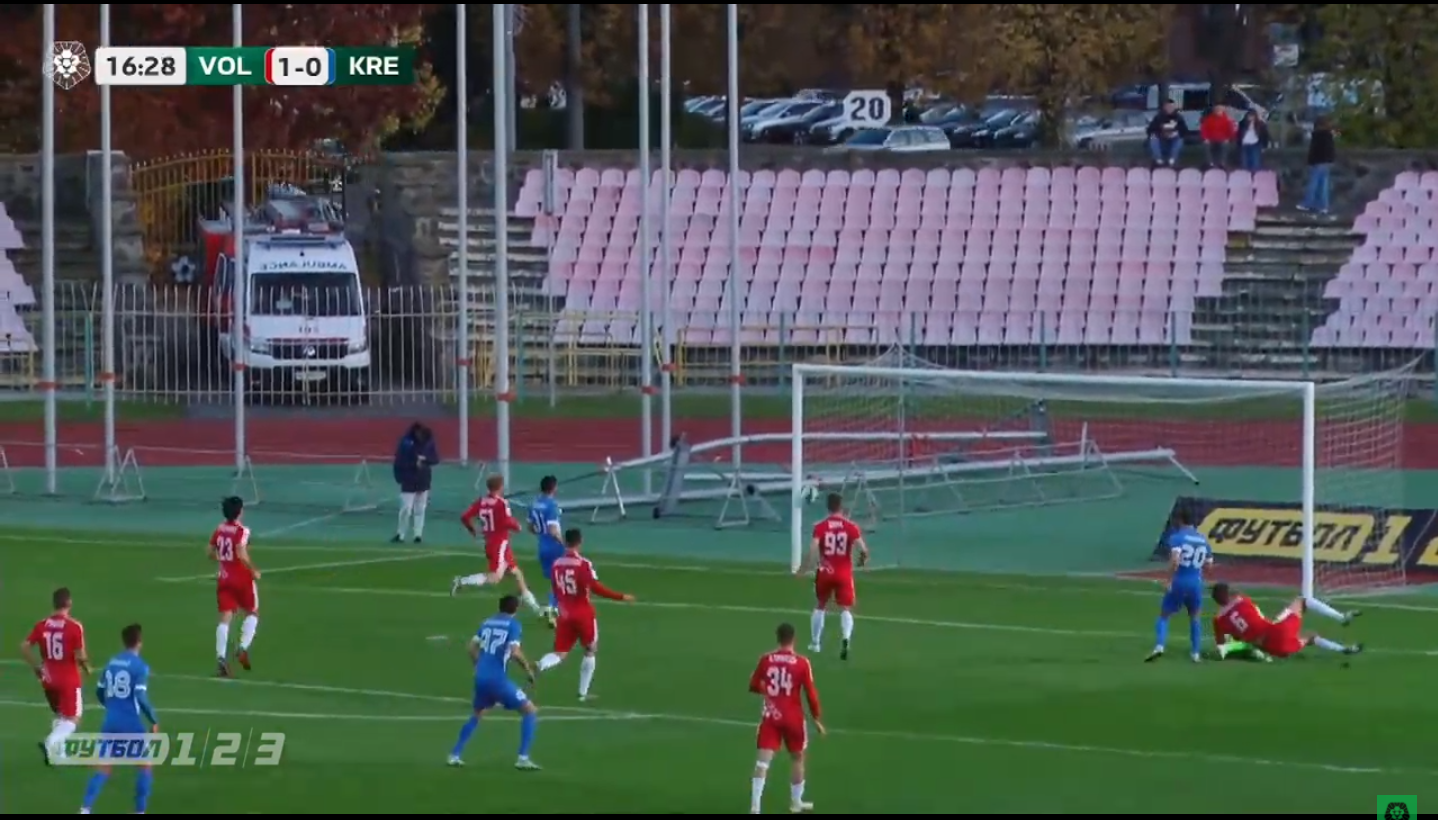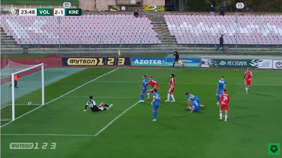 На 13-й хвилині Іван Цюпа пробив штрафний, м’яч вдарився об стійку і від голкіпера гостей Даніїла Єрмолова залетів у ворота.