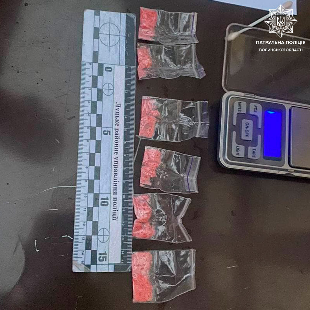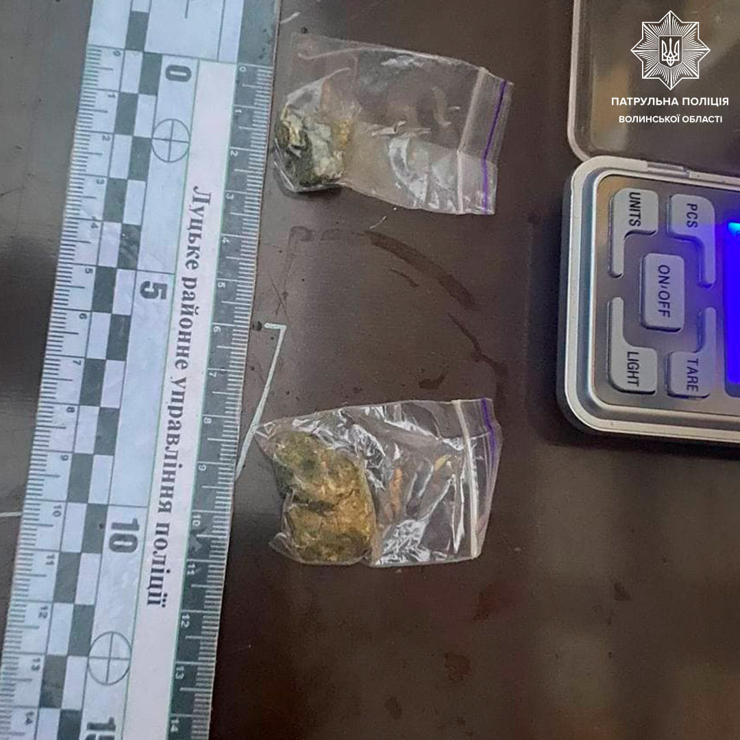 Патрульні затримали чоловіка та викликали слідчо-оперативну групу Луцького районного управління поліції для проведення відповідних слідчих дій та вилучення виявлених речовин.