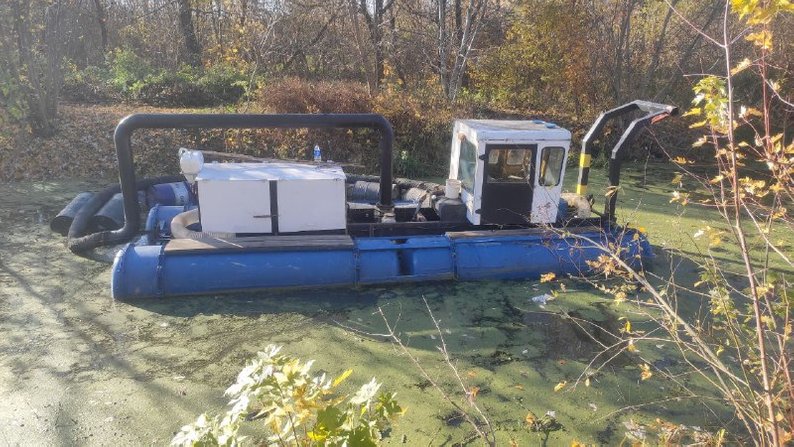За допомогою спеціальної техніки – мульчера, робітники вирівнюють дно водойм, відкачують мул та видаляють коріння рослин.
