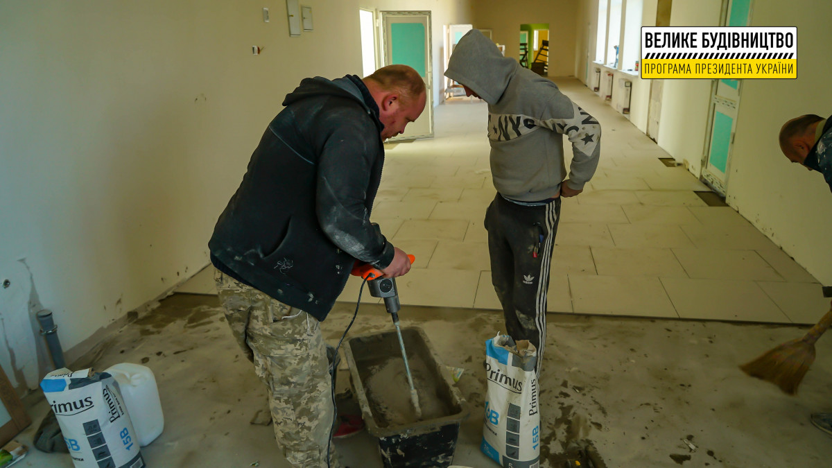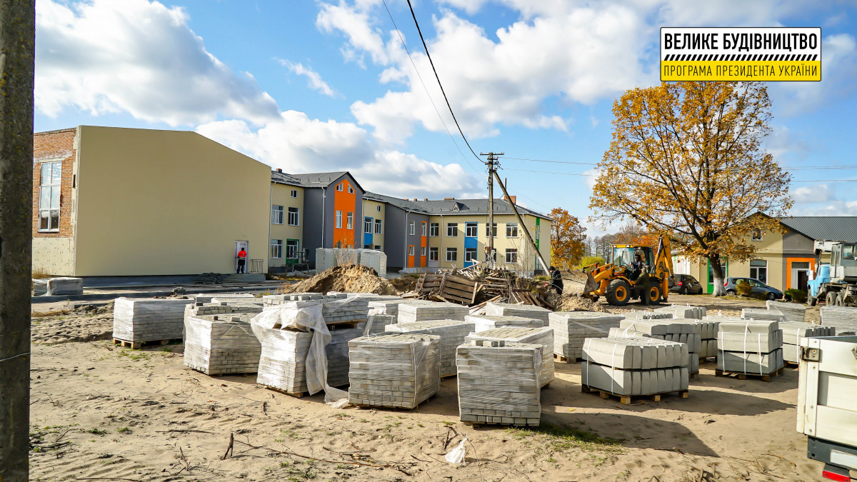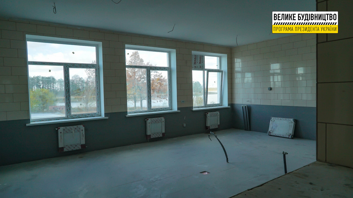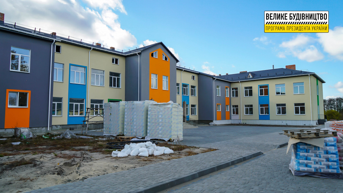 Наразі будівельна готовність об’єкта становить 98%. Тут тривають завершальні внутрішні і зовнішні ремонтні роботи. Зокрема, до навчального корпусу улаштовують асфальтобетонні під’їзди, а на території освітнього закладу – тротуари та доріжки. Усередині приміщення уже встановленні двері та сантехніка.