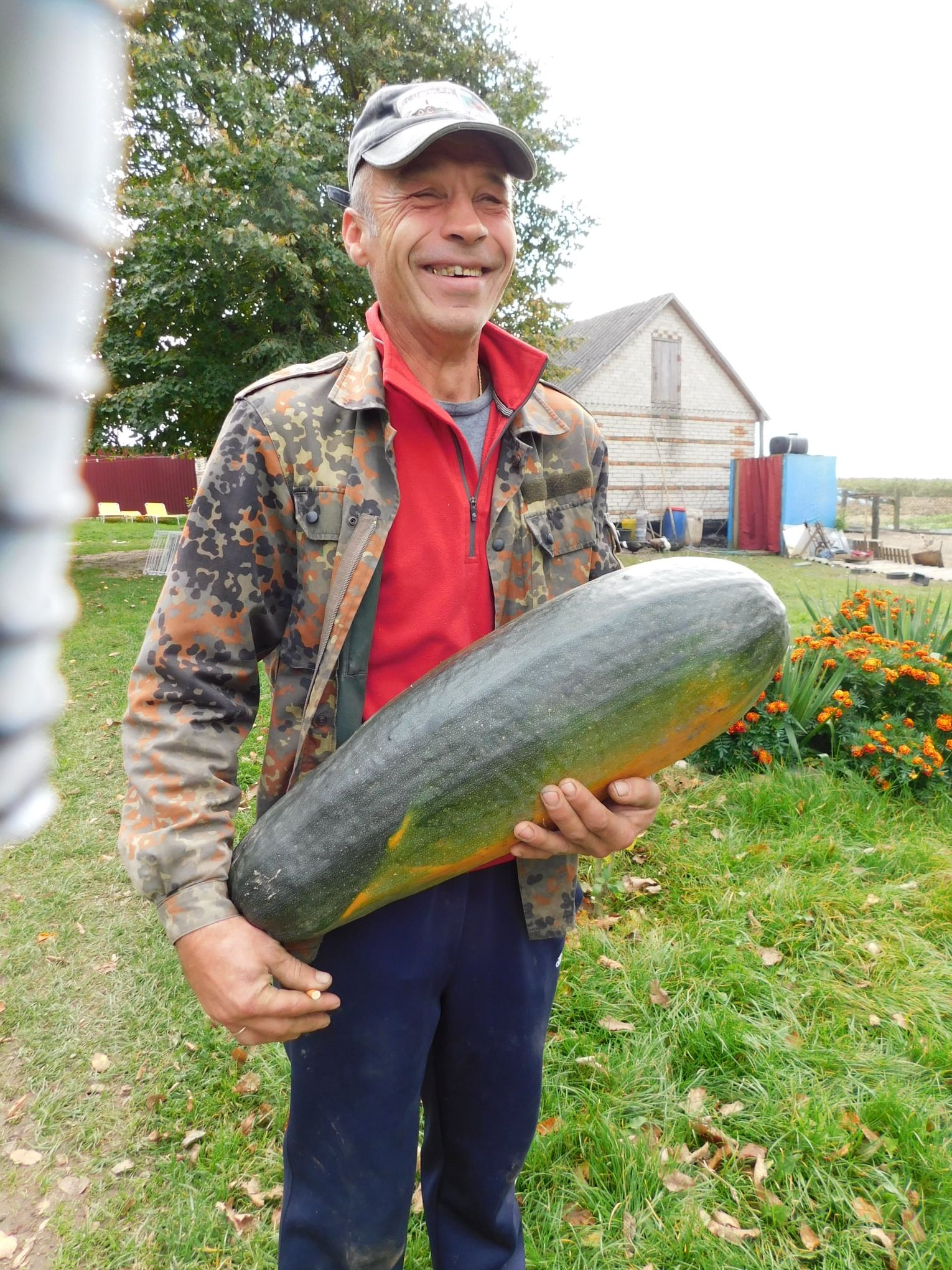 Перехопивши погляд на нього, господар (на світлині) похвалився: наступного року на своєму городі він із своєю Тетяною теж виростить такого, або ще більшого велетня, бо цього, 50-кілограмового, на насіння подружжю по-дружньому подарувала сім’я Людмили й Олександра Степанюків із Квасова.
