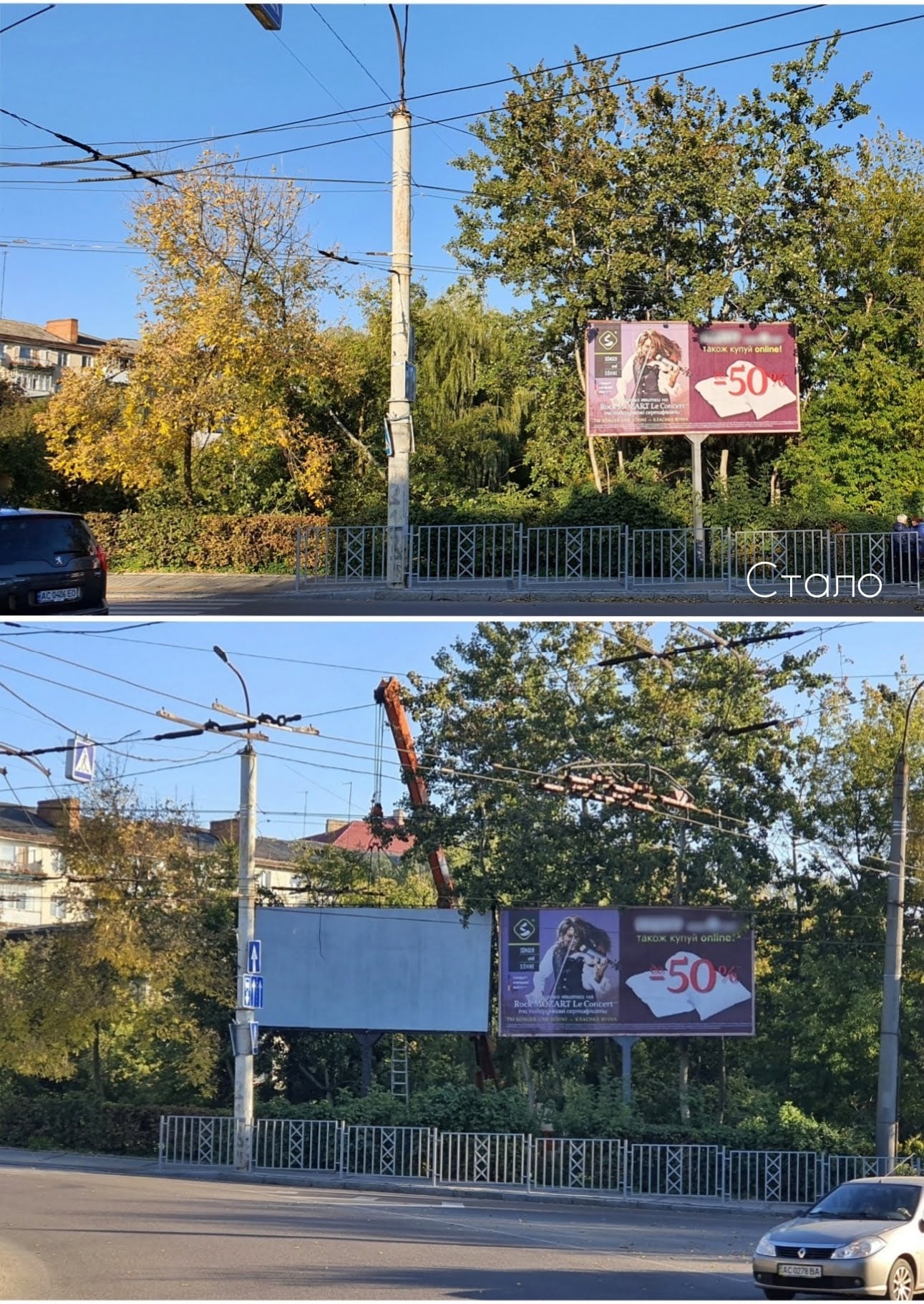 У центрі міста на перетині вулиць Паркової та Глушець, демонтували черговий рекламний щит.