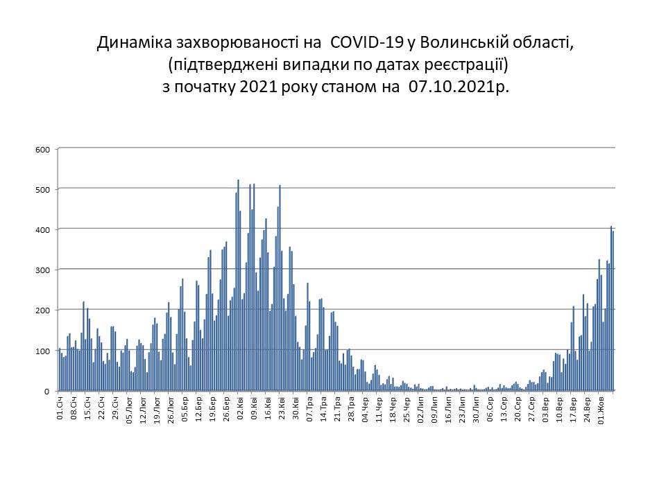 Cтаном на ранок 8 жовтня на Волині протягом попередньої доби зареєстровано 395 нових випадків коронавірусної хвороби COVID-19 (з них дітей – 41, медпрацівників – 13).