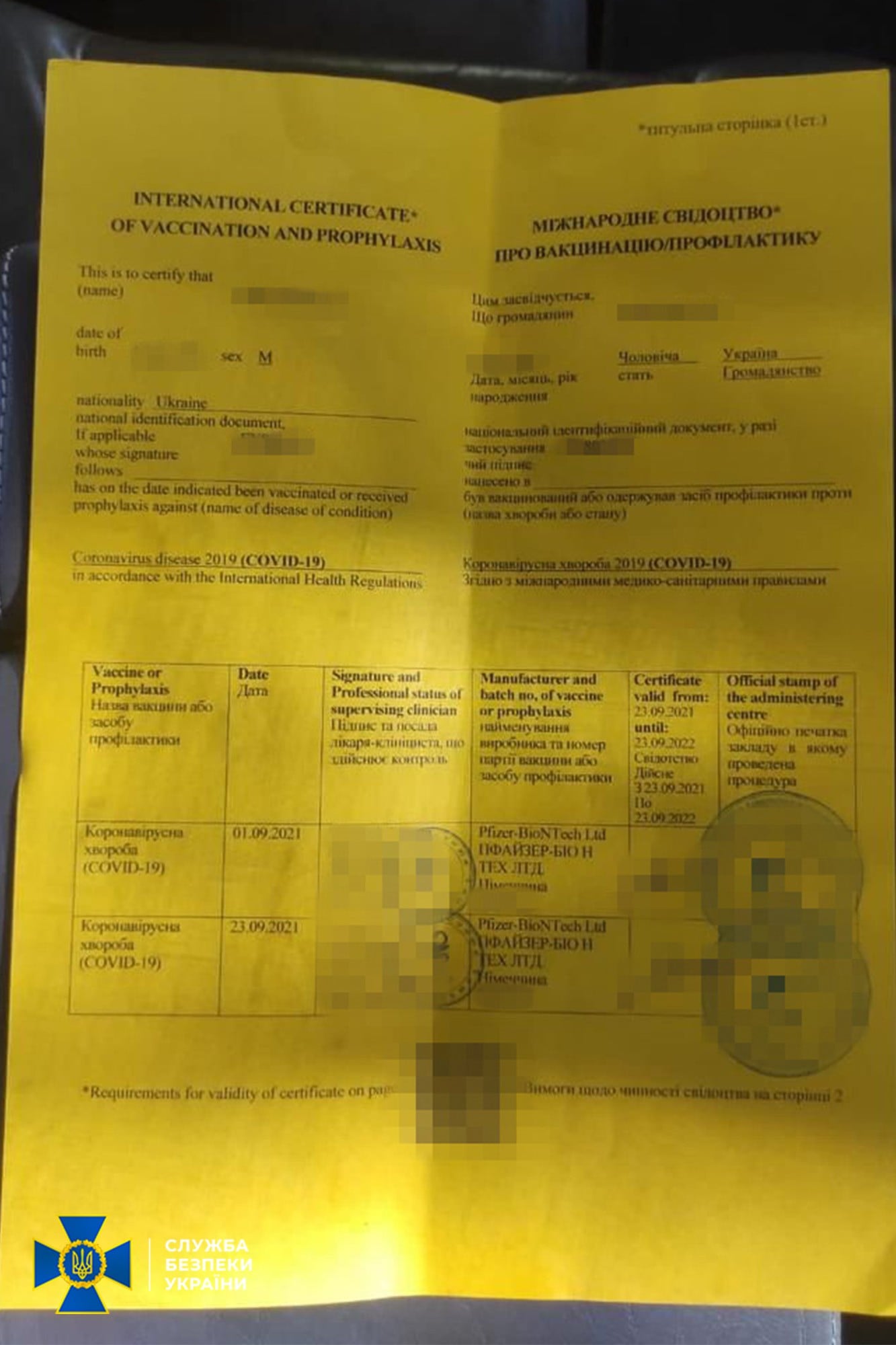 СБУ на Волині ліквідувала чергову схему фальсифікації міжнародних свідоцтв про вакцинацію від COVID-19.