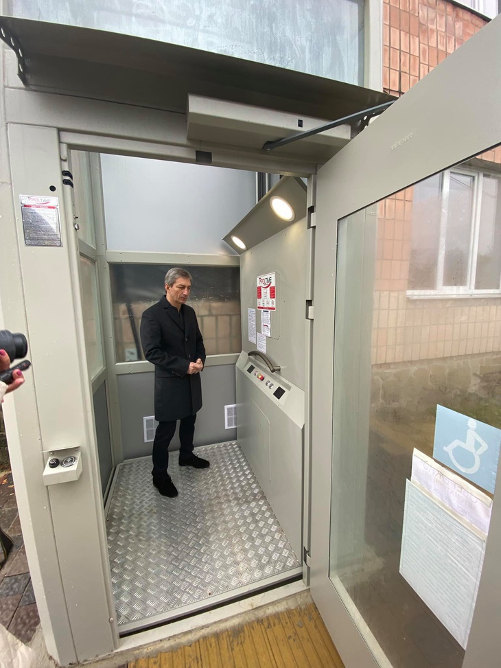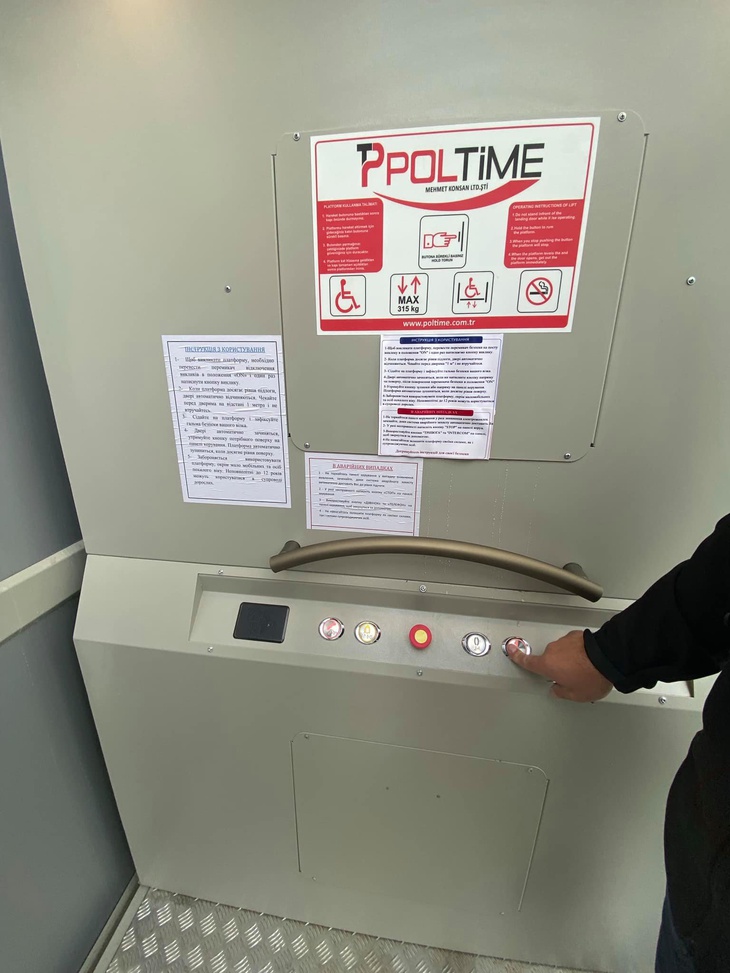 Новий ліфт цілковито безпечний, з широкою платформою, де зручно стане візок, з плавним, без ривків, ходом. Конструкція із подвійним запасом міцності та можливістю регулювати хід, самостійно зупиняти тощо. Вантажопідйомність - понад 300 кг.