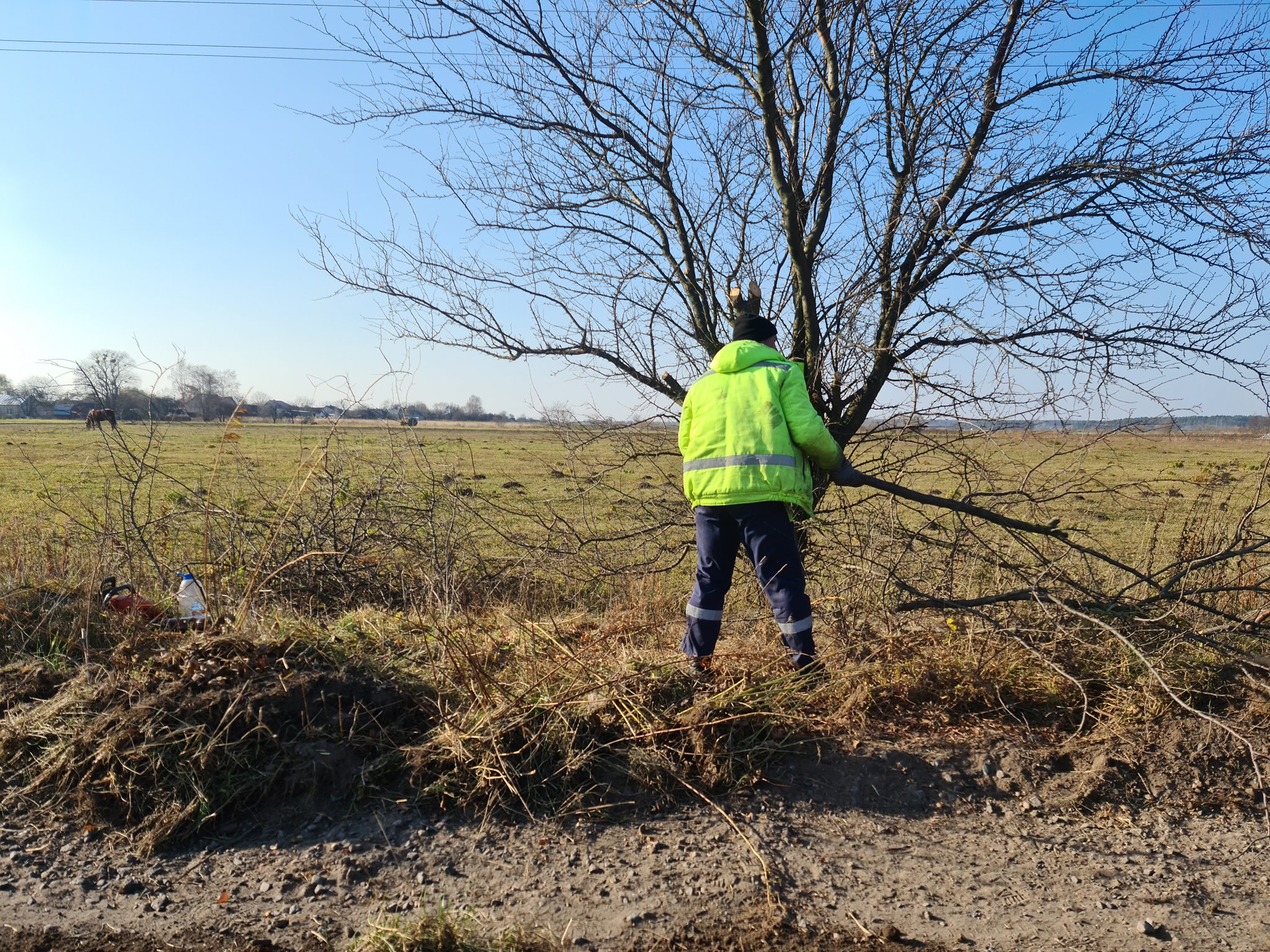 Заступник Підгайцівського сільського голови Леонід Гроголь розповів, що нині підрядник розчищає територію від нашарувань ґрунту, узбіччя – від чагарників та дрібнолісся, зрізає аварійні сухостійні дерева, викорчовує пні.