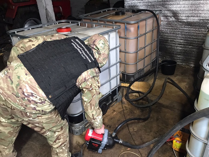 На підпільному об'єкті виявили чотири тисячі літрів пального, яке знаходилося в пластикових резервуарах, а також помпи, призначені для розливу дизпалива.