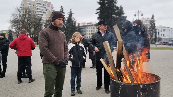 Після молитви створили імпровізоване наметове містечко, яке нагадувало події початку Революції Гідності, та поряд поставили бочку, у якій розпалили вогонь.