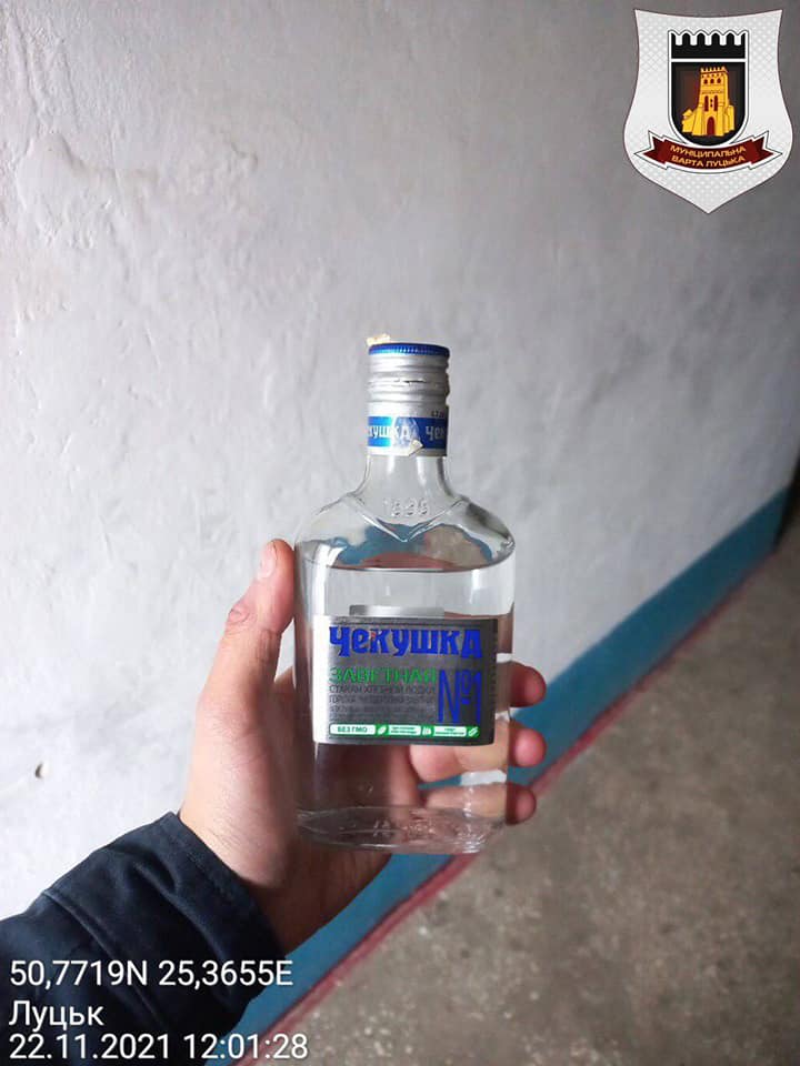 Луцькій муніципали «накрили» чергову точку продажу дешевого пійла. Сурогатний алкоголь продавала жінка з квартири вулиці Карбишева, 2б.
