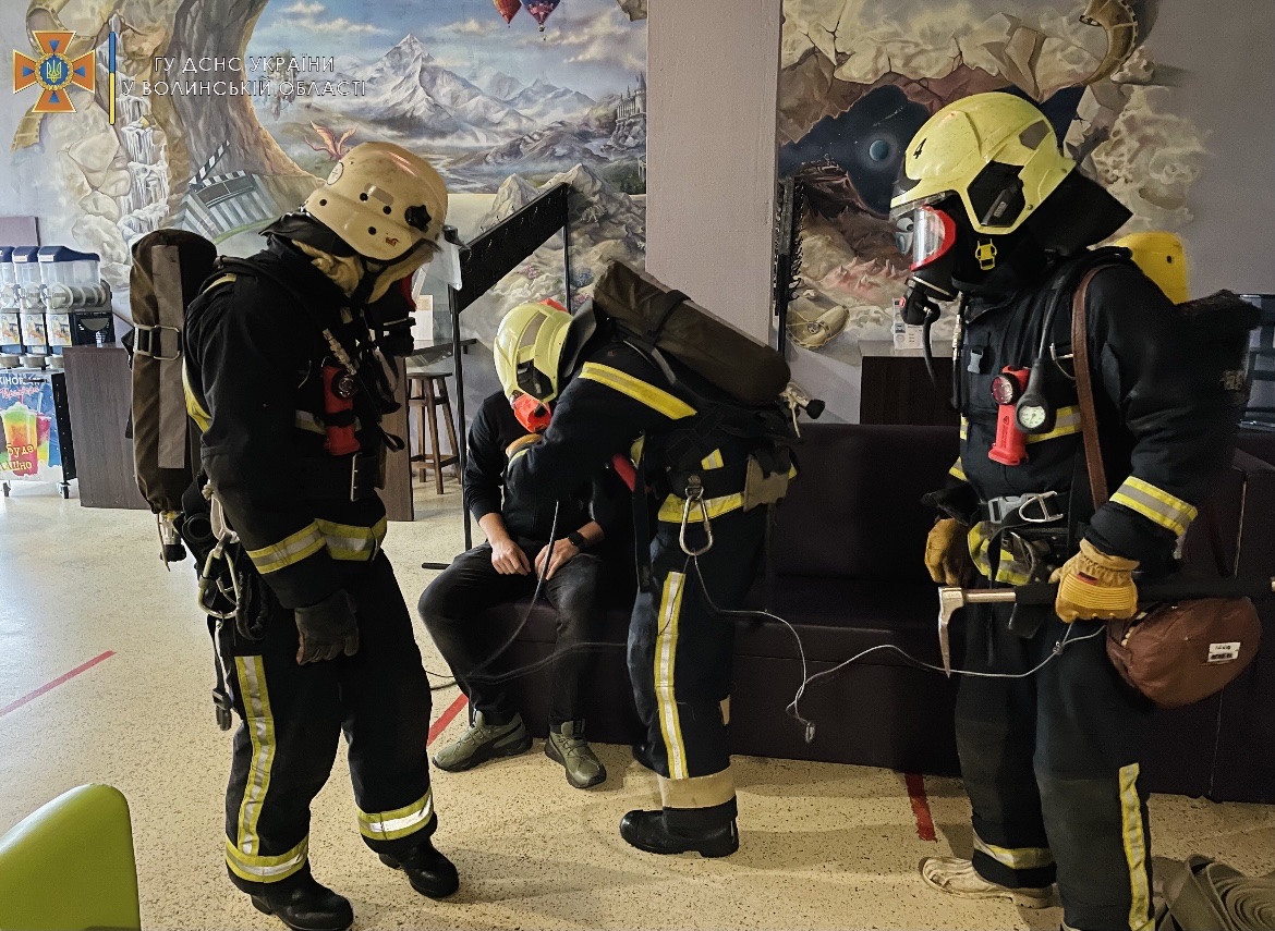 Рятувальники відпрацювали дії з проведення розвідки імітованої пожежі, евакуації відвідувачів та здійснення ліквідації надзвичайної події враховуючи найскладніші сценарії її розгортання.