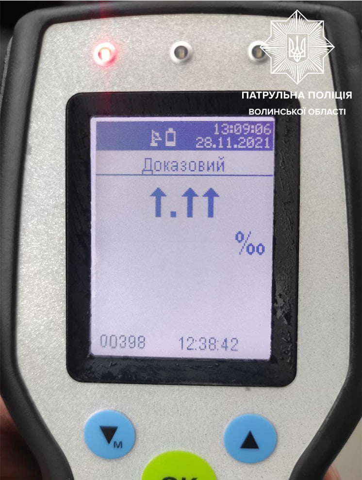 Окрім цього поліціянти виявили в нього ознаки алкогольного сп’яніння. Останній пройшов огляд на визначення стану сп’яніння на місці зупинки транспортного засобу за допомогою спеціального технічного засобу, який після проведення тесту показав в небо.