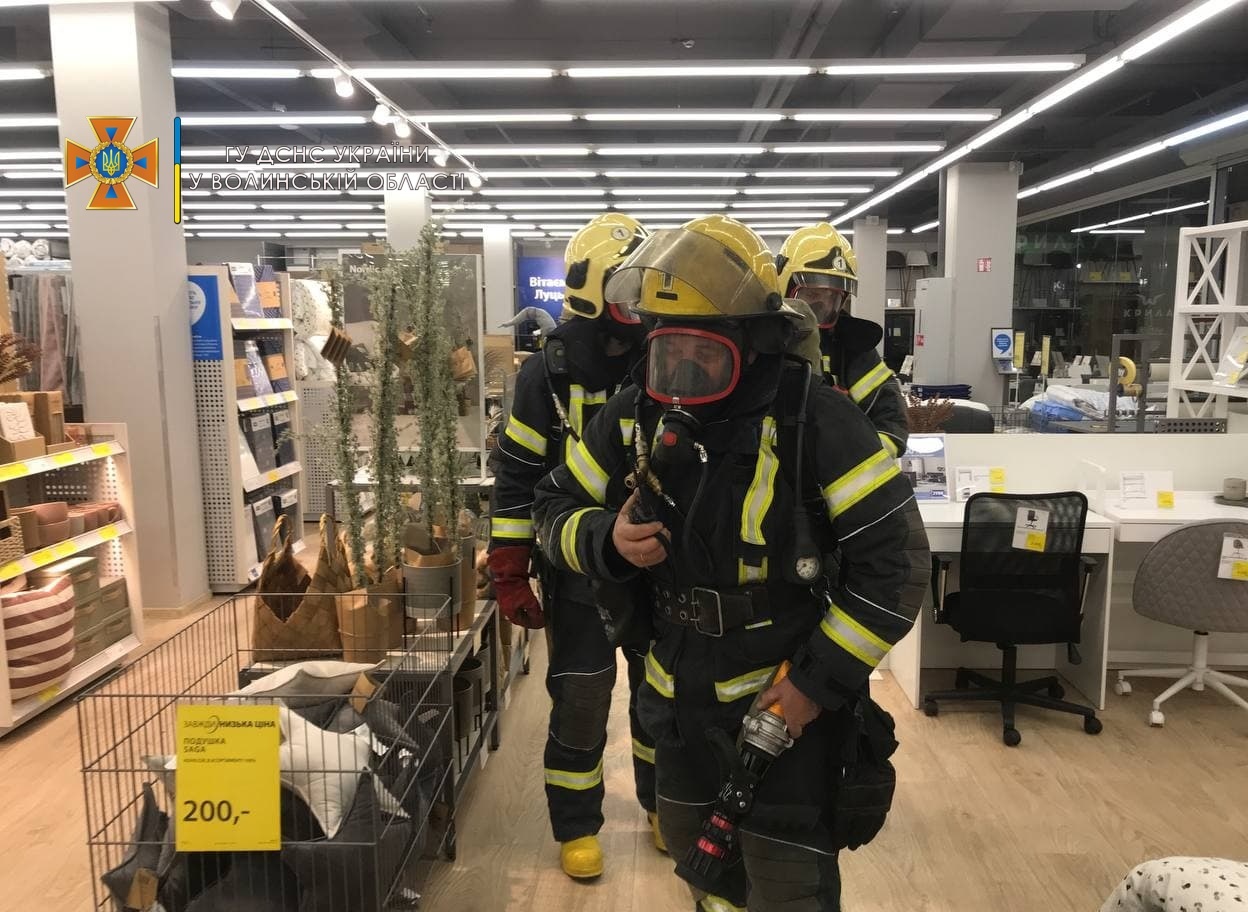 У Луцьку в торгівельному центрі «Імідж», що на вулиці Рівненській, вранці 5 листопада підрозділи ДСНС провели навчання з гасіння пожежі.
