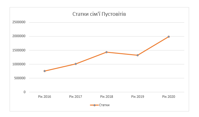 Графік статків 753450 грн, 1014341 грн, 1429117 грн, 1325351 грн, 1991643 грн