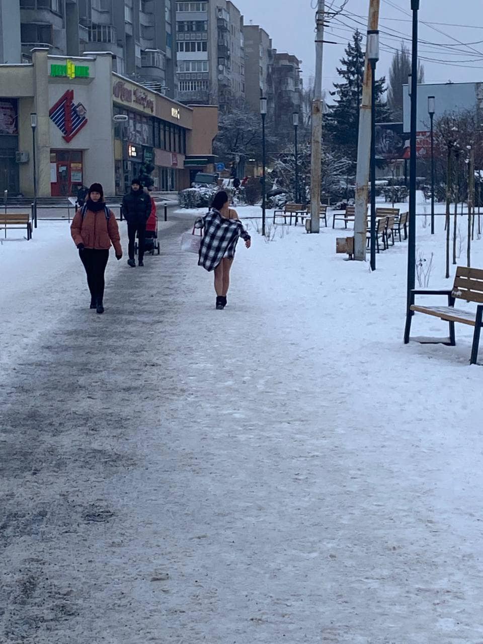 У Луцьку на площі Героїв Майдану при мінусовій температурі прогулювалася напівоголена пані.