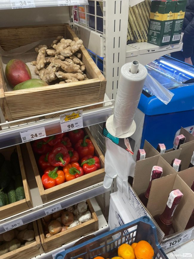 Вже на касі на цьому наголосила також і працівниця гіпермаркету. Дехто з покупців, до слова, прочитавши інформацію про платний пакет, вирішував відмовитися від нього і брав, для прикладу, банани без торбинки.