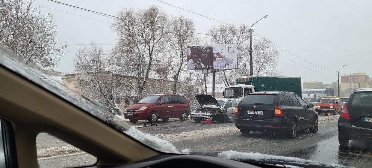 У понеділок, 13 грудня, близько 12 години сталася дорожньо-транспортна пригода, під час якої зіткнулося три авто: Skoda, Daewoo Lanos та Volkswagen.