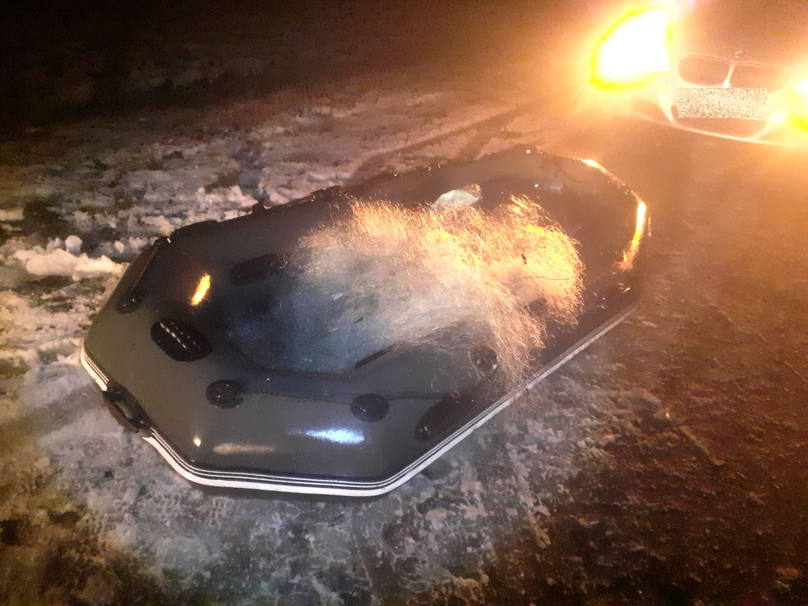 Державні інспектори рибоохорони оперативно прибули на місце правопорушення. Виявлено громадянина, який із двома невстановленими особами з гумового човна здійснювали незаконний вилов водних біоресурсів чотирма сітними знаряддями лову.