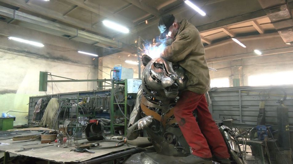 Цьогоріч над скульптурою тигра працює коваль Андрій Кравчук. Чоловік за освітою токар, проте опанував майстерність художньої ковки.