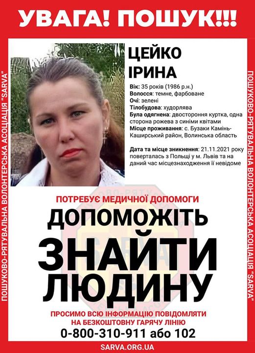 Ірина Цейко – мешканка с. Бузаки Камінь-Каширського району Волині. Зазначають, що вона потребує медичної допомоги.