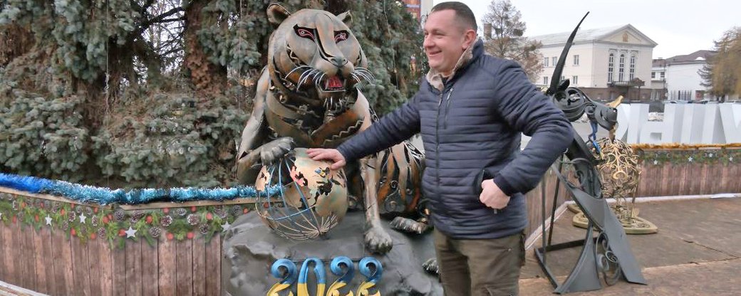 Ковані символи року на подарунок місту Іван Возняк виготовляє разом з ковалями з 2014 року. Над створенням цьогорічної фігури тигра працювали з літа: спершу обговорили проєкт, два місяці пішло на ковку, монтаж фігури та зварювання.