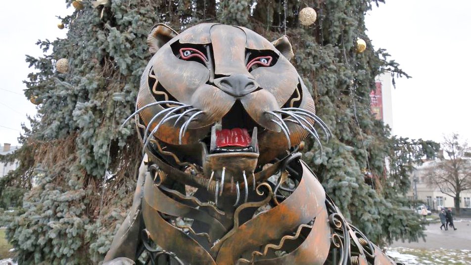 У Луцьку встановили дев'ять кованих новорічних фігур, серед них – символ прийдешнього року – тигр. Скульптури розмістили на спеціальному загородженому майданчику на Театральному майдані Луцька біля новорічних ялинок.