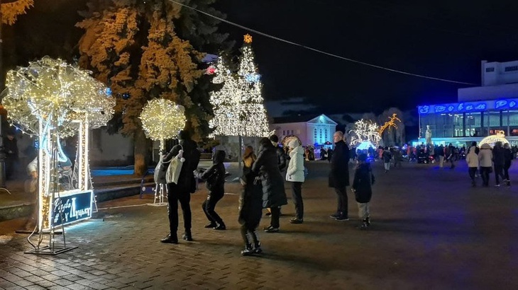 О 17:00 на трьох ялинках ввімкнули святкову ілюмінацію та засвітили вуличні гірлянди. Цьогоріч на дійство зібралося декілька сотень людей.