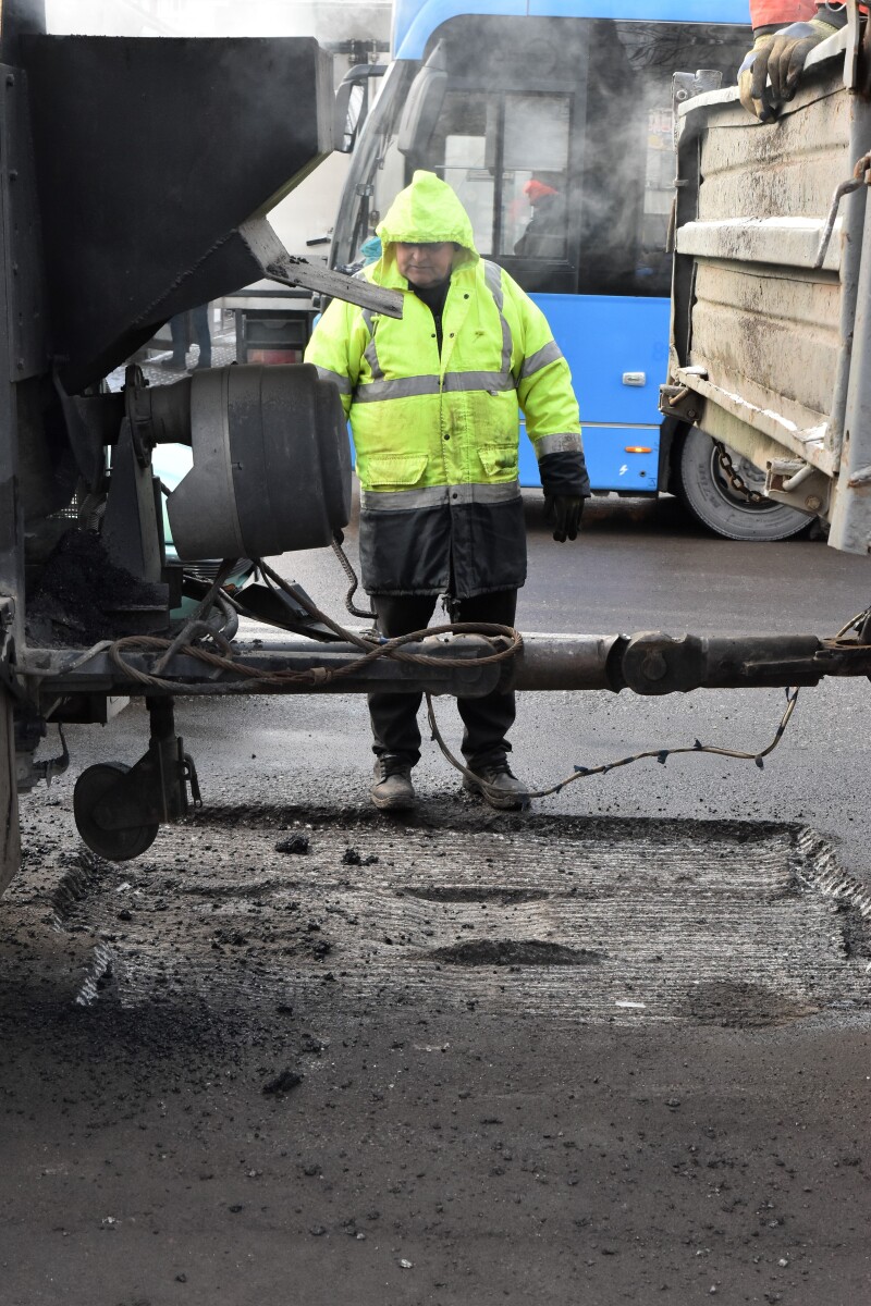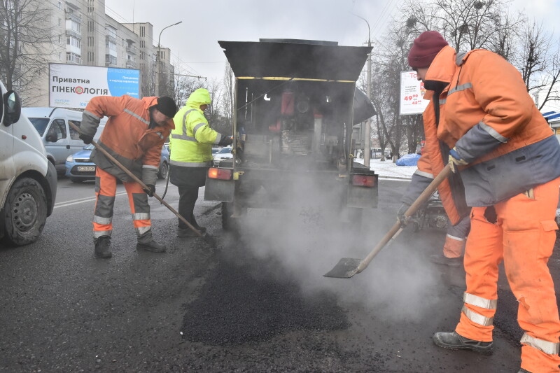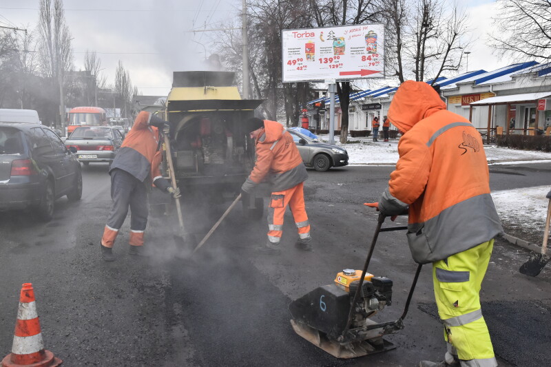 У середу, 22 грудня, ремонтують дорогу на вулиці Домни Гордіюк. Застосовують технологію холодних асфальтобетонних сумішей, що дозволяє проводити роботи при температурі повітря до -15 градусів.