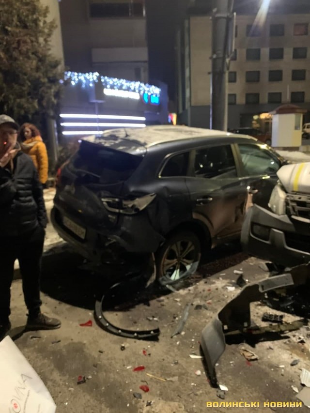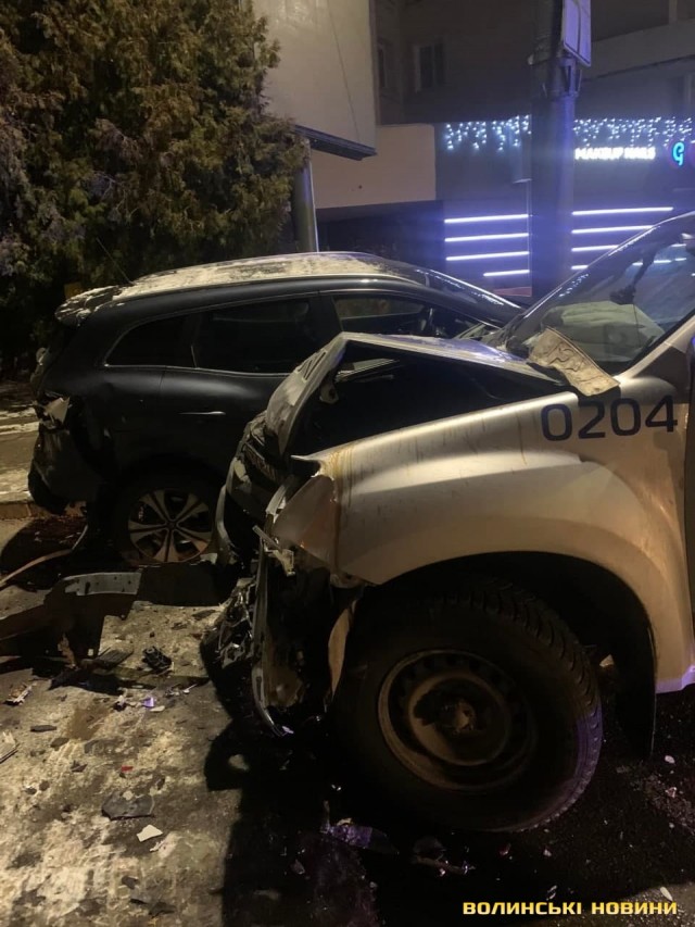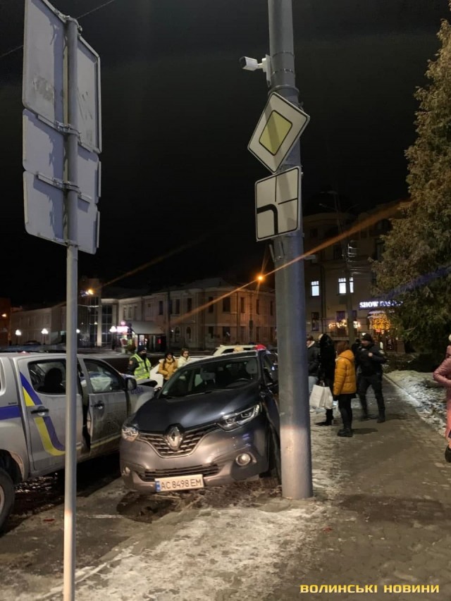 Як повідомила у коментарі ІА Волинські Новини власниця Renault, у яку влетіло авто патрульних, автомобіль стояв припаркований за усіма правилами. Проте сила удару настільки була велика, що автівку розвернуло і вона врізалась у стовп.