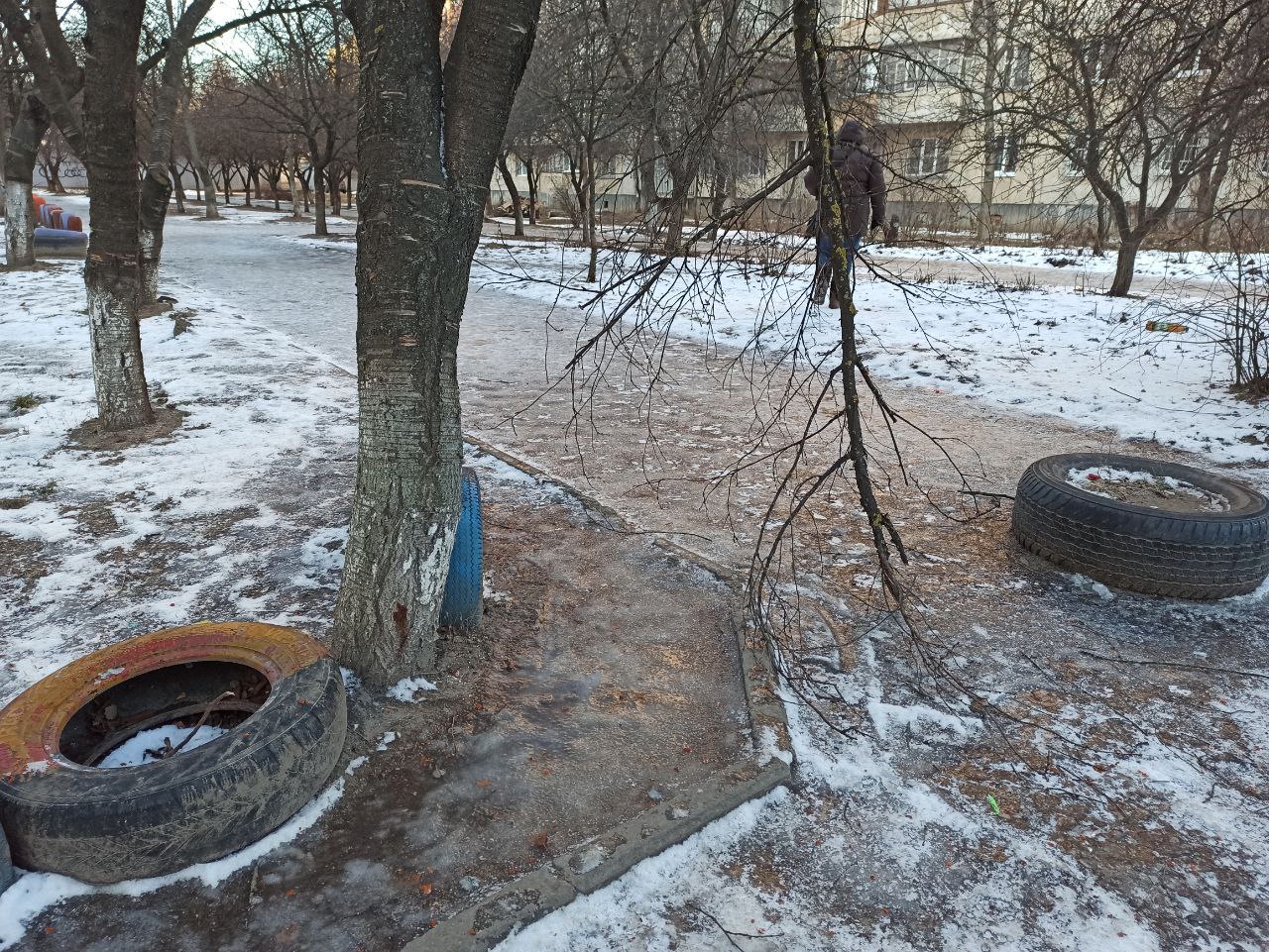 Від машин захистилися скатом, а пішоходам розминутися сутужно, ще й в ожеледицю.