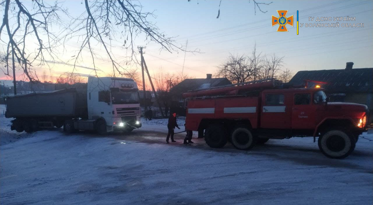 Того ж дня, близької 16-ої години на вулиці сосновій у смт Торчин зі слизької ділянки автодороги з’їхав у кювет вантажний автомобіль. Витягнули з кювету великогабаритний транспортний засіб рятувальники 20-го Державного пожежно-рятувального поста смт Торчин за допомогою буксирувального тросу.