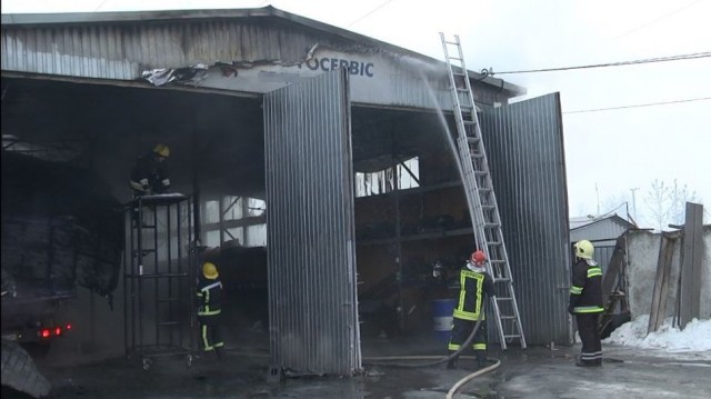 У Луцьку в автосервісі на вулиці Мамсурова сталася пожежа: горів один із металевих боксів для ремонту вантажних автомобілів.