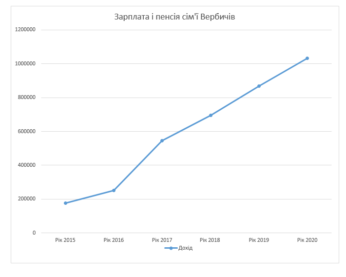 Уже 2019 року грошові активи у Вербичів значно зросли: 37 тисяч доларів готівкою і 125 тисяч кешем у гривнях. Зрештою, і зарплата пана Юрія становила тоді понад 685 тисяч гривень за рік.