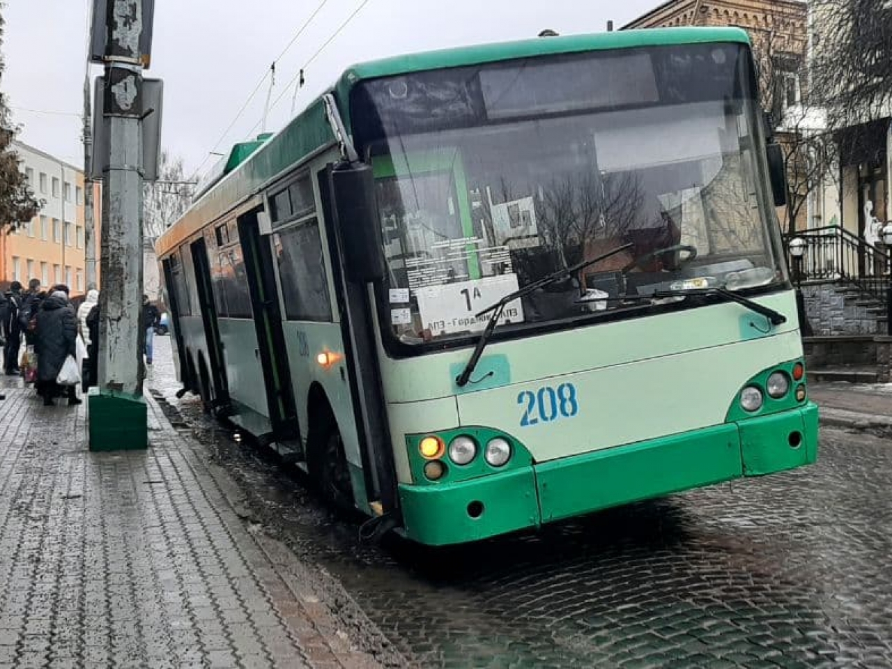 У Луцьку на вулиці Богдана Хмельницького через аварійну ситуацію на проміжній зупинці висадили всіх пасажирів тролейбуса «Богдан».
