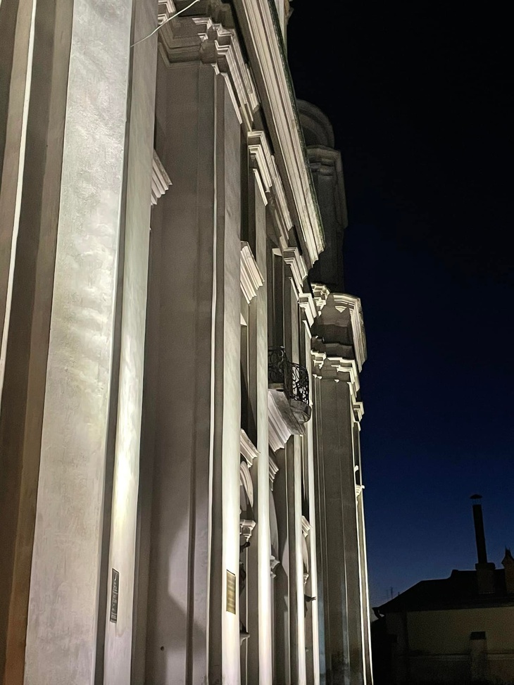 «Тестуємо та налаштовуємо архітектурну підсвітку кафедрального костелу святих Петра і Павла. Остаточний результат за тиждень, але вже гарно. Повертаємо життя в Старе місто», – написав очільник міста.