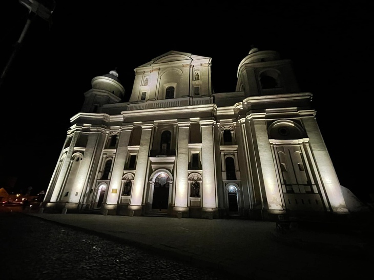 У Луцьку підсвітили кафедральний костел Петра і Павла, що в Старому місті.