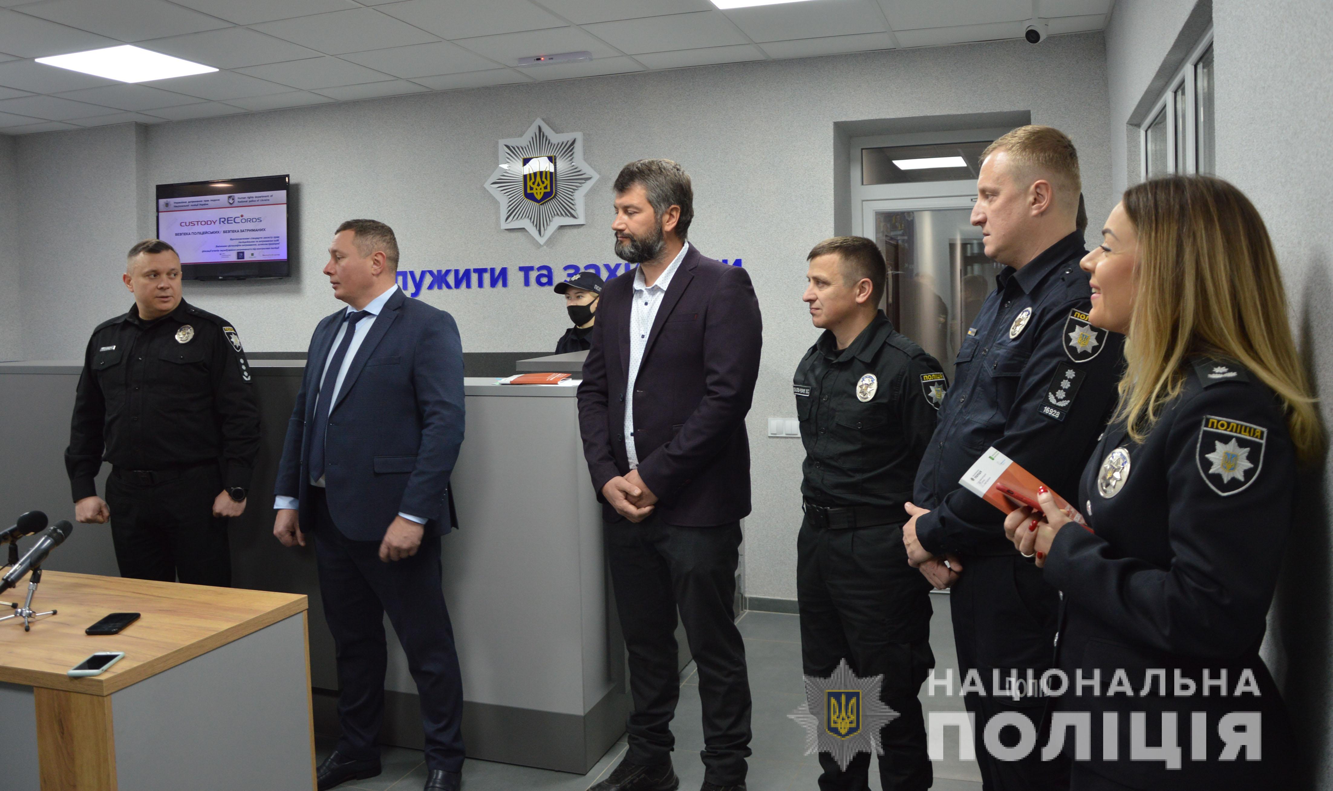 Присутнім показали оновлене приміщення, де є кімната інтерв’ювання затриманого, кімната для конфіденційного побачення затриманого із захисником, кімнати для проведення слідчих та інших дій. Наявна тут і зона безперешкодного доступу – вестибюль, фронт-офіс, кімната для прийому громадян. Є також кімната дружня до дитини. Уже кілька тижнів працює тут інспектор з дотримання прав людини, який першим спілкується із доставленими особами, з’ясовує обставини затримання, вносить усі дії в спеціальну електронну базу.