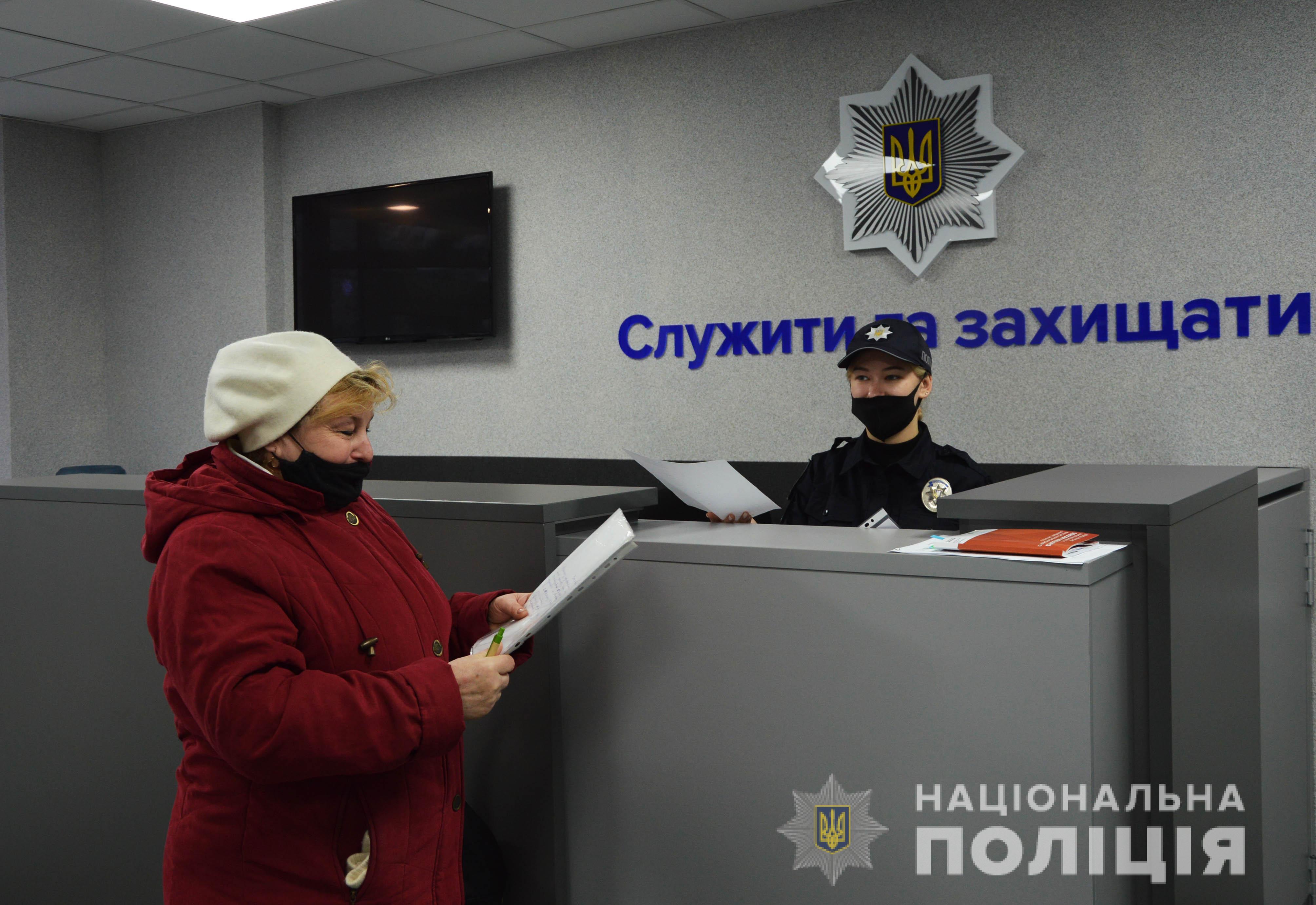 «Комфортно, зручно, професійно», – так відгукнулась про роботу оновленого управління поліції відвідувачка Марія Євгенівна. Жінка звернулась, аби написати заяву в поліцію про згубу документа. Поліцейська, яка біля фронт-офісу зустрічає відвідувачів, провела пенсіонерку в кімнату прийому громадян, надала зразок заяви і необхідні рекомендації.