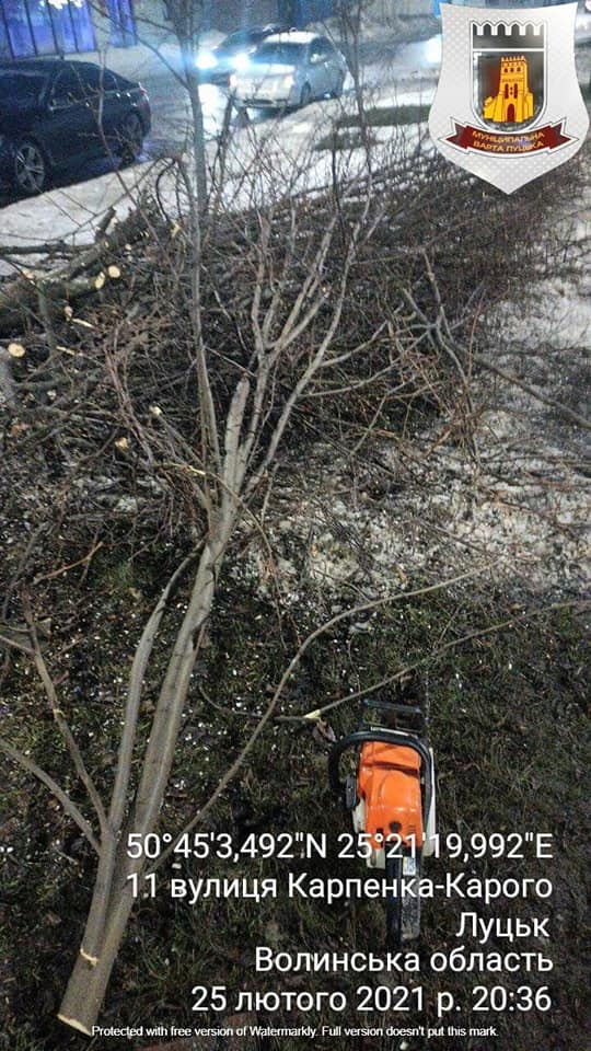 Інспектори муніципальної варти виявили осіб, які зрізали дерево (липу), що росло на зеленій зоні по вул. Карпенка-Карого, 11.