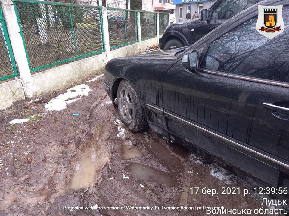 Муніципали нагадують, що відповідно до п.2.5.5.1.7 Правил благоустрою міста Луцька на об’єктах благоустрою забороняється заправляти, ремонтувати, здійснювати заходи з догляду за транспортними засобами і механізмами на прибудинкових територіях, газонах, берегах річок, ставків, на пішохідних доріжках, тротуарах, у парках, скверах тощо, а також пересуватися транспортними засобами по тротуарах, пішохідних доріжках, газонах, квітниках, інших зелених зонах (луги, галявини тощо) міста та паркувати на них транспортні засоби.