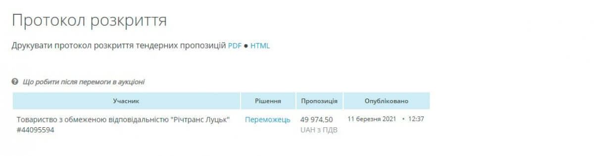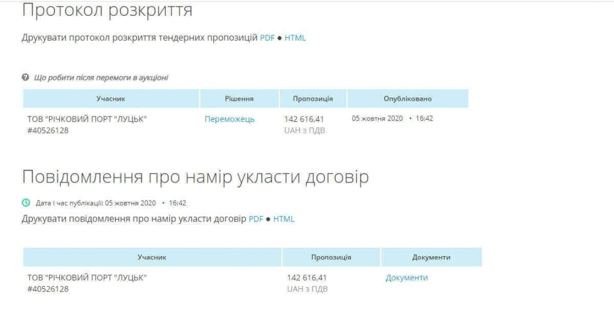 Про це з посиланням на сайт «Прозоро» повідомляє «ВолиньUA».