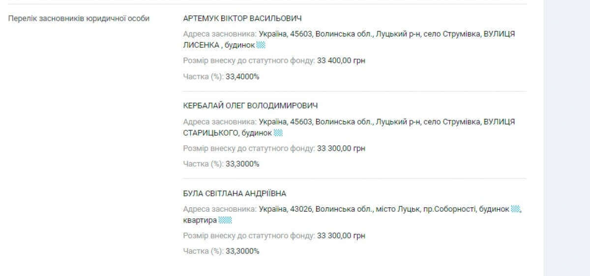 Серед засновників та керівників фірми Кербалай Олег Володимирович, який вніс 500 грн. Він же керівник ще 3-х організацій, серед яких ТОВ «РІЧКОВИЙ ПОРТ «ЛУЦЬК», яку пов’язують з ексдепутатом Луцькради Сергієм Булою.