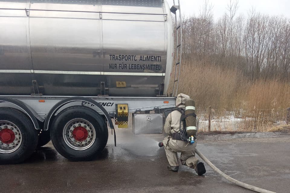 У вівторок, 23 березня, о 9:20 до служби «101» надійшло повідомлення про те, що в буферній зоні митного поста «Доманово» Ратнівського району відбулася розгерметизація однієї з трьох секцій автоцистерни вагою 23 т з неконцентрованою азотною кислотою.