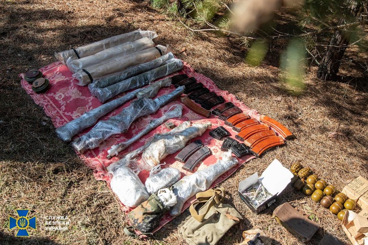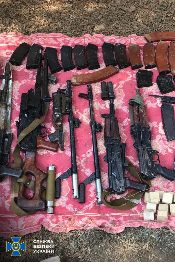 Правоохоронці вилучили: майже 5,5 тисяч набоїв різного калібру; 7 реактивних протитанкових гранат РПГ-26; 4 підствольних гранатомети; ручний кулемет Калашнікова; 2 автоматичні гвинтівки; 3 пістолети та 3 автомати Калашнікова АКС та АКС-74; 7 помпових рушниць; 38 гранатометних пострілів ВОГ-25, 21 гранату (зокрема, Ф-1 та РГД-5); 16 запалів УЗРГМ та 6 тротилових шашок, пластид; пристрій для забезпечення конфіденційних перемовин тощо.